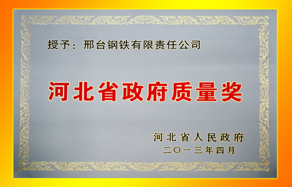 邢鋼榮獲2012年“河北省政府質(zhì)量獎”殊榮