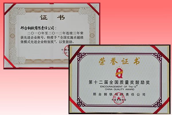 - 邢鋼再度榮獲“全國(guó)質(zhì)量獎(jiǎng)鼓勵(lì)獎(jiǎng)”,并獲“全國(guó)實(shí)施卓越績(jī)效模式先…