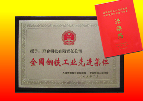 2009年2月,人力資源和社會保障部、中國鋼鐵工業(yè)協(xié)會授予邢鋼“全國鋼鐵工業(yè)先進(jìn)集體”榮譽稱號。