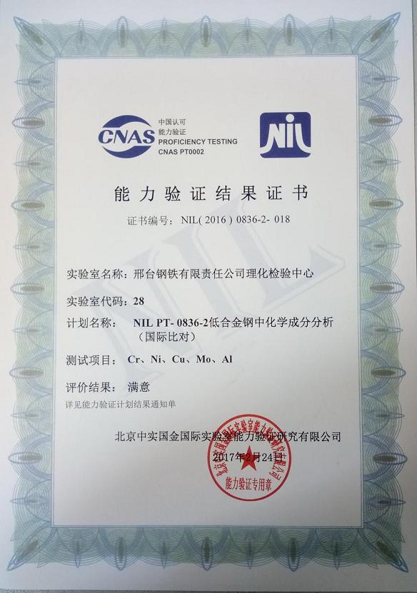 - 邢鋼理化檢驗(yàn)中心9項(xiàng)能力驗(yàn)證全部通過