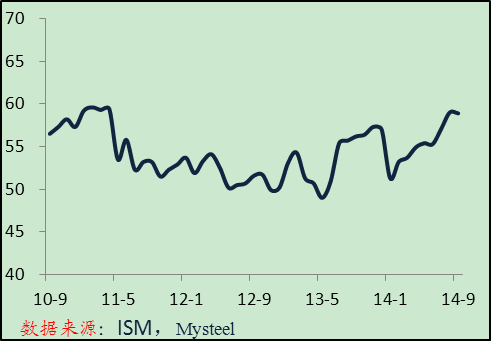 美國(guó)主要下游行業(yè)指標(biāo)(2008.7=100) 美國(guó)ISM制造業(yè)PMI
