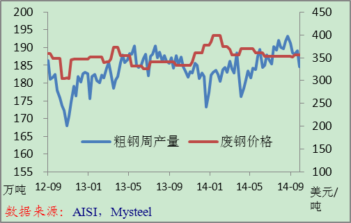 美國(guó)粗鋼產(chǎn)量和1號(hào)重廢價(jià)格 美國(guó)鋼材進(jìn)口量