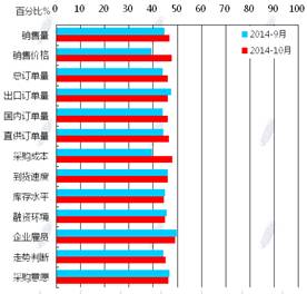 蘭格鋼鐵信息研究中心統(tǒng)計(jì)發(fā)布2014年10月鋼鐵流通業(yè)PMI總指數(shù)為47.8,環(huán)比微升0.6個(gè)百分點(diǎn)(見(jiàn)圖1),顯示鋼鐵流通市場(chǎng)活躍度略有好轉(zhuǎn)。從各項(xiàng)分指數(shù)看,10月份鋼鋼鐵流通業(yè)PMI調(diào)查的10項(xiàng)分指數(shù)5升5降。其中,企業(yè)銷(xiāo)量增加,下游訂單增加,但企業(yè)對(duì)后市較為謹(jǐn)慎,采購(gòu)意愿未增(見(jiàn)圖2)??傮w判斷11月鋼鐵流通市場(chǎng)需求景氣微升。