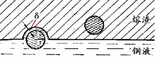 熔渣與鋼液作用,有的熔渣能夠吸收夾雜物,有的熔渣反而增加鋼中的夾雜物。鋼液中夾雜物顆粒進(jìn)入熔渣被吸收,如下圖所示,自由能變化為: