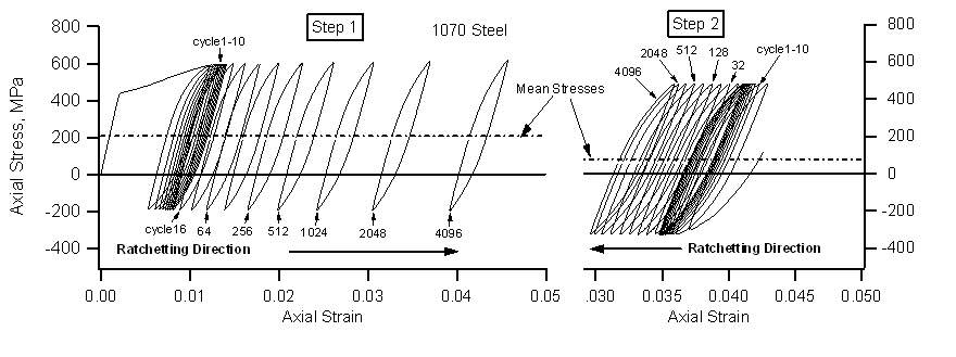 材料受到拉伸或壓縮時,如果力大于材料的屈服強度,那么材料就會發(fā)生塑性變形。外力卸載并反向加載,材料先是沿彈性線恢復繼而發(fā)生反向變形,如果反向加載的載荷小于初始加載的載荷,那么材料反向變形大小就會小于初始變形,進而產(chǎn)生了殘余應變。如此反復,這就是材料中的棘輪效應。簡單點說,就是材料在非對稱應力循環(huán)載荷下將會產(chǎn)生塑性變形循環(huán)累積現(xiàn)象,稱之為棘輪效應。