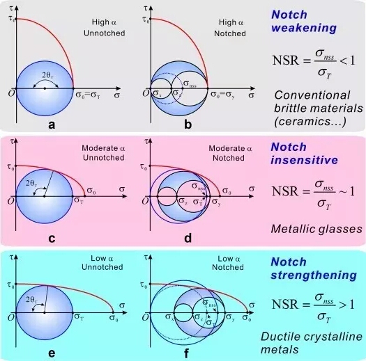 缺口效應是指集中應力達到材料的屈服強度時,引起的缺口根部附近區(qū)域的塑性變形。即缺口造成應力的集中,這是缺口的第一個效應。缺口改變了缺口前方的應力狀態(tài),使平板中材料所受的應力由原來的單向拉伸改變?yōu)閮上蚧蛉蚶欤@是缺口的第二個效應。試樣的屈服應力比單向拉伸時的要高,即產(chǎn)生了所謂缺口“強化”現(xiàn)象。缺口使塑性材料得到“強化”,這是缺口的第三個效應。