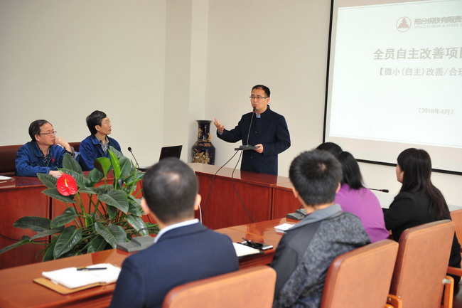 公司工會(huì)副主席、黨群工作部部長(zhǎng)褚金富主持會(huì)議,作了《自主改善/合理化建議管理細(xì)則》制度發(fā)布,并就項(xiàng)目背景、目標(biāo)及二季度項(xiàng)目策劃作了重點(diǎn)介紹。