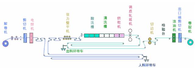 連續(xù)式酸洗是一種高產(chǎn)優(yōu)質(zhì),發(fā)展較快的酸洗方法,它是通過在機(jī)組上設(shè)置焊機(jī)和活套裝置,使工藝段在換卷時不停機(jī),保證機(jī)組連續(xù)運(yùn)行,但機(jī)組長,設(shè)備復(fù)雜,投資較高。連續(xù)式酸洗線主要有兩種形式,分別是連續(xù)臥式酸洗機(jī)組和連續(xù)塔式酸洗機(jī)組。