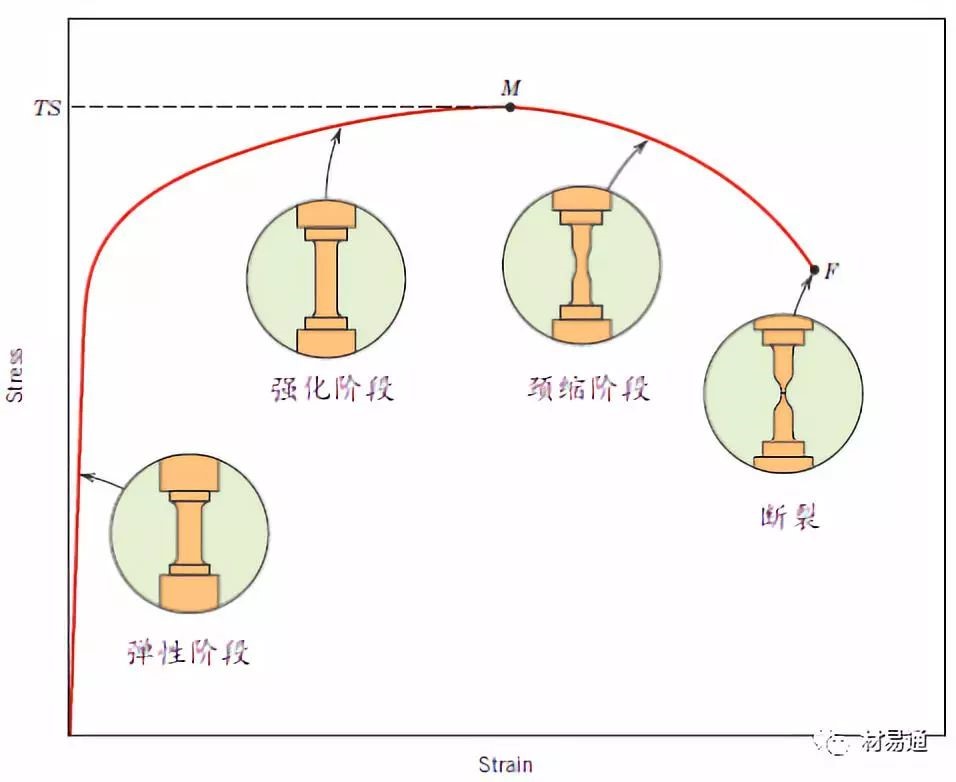曲線最高點所對應(yīng)的應(yīng)力值記作,稱為材料的抗拉強度(或強度極限),它是衡量材料強度的又一個重要指標(biāo)。 強度極限是材料在整個拉伸過程中所能承受的最大拉力。