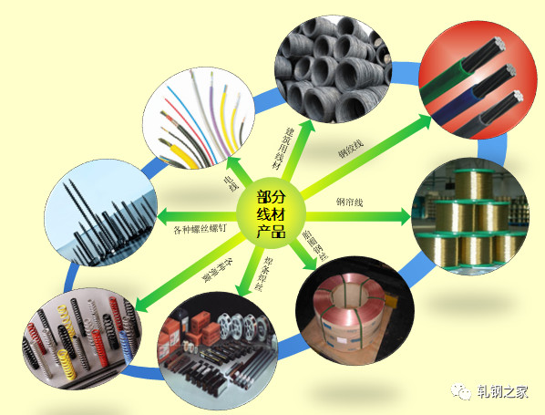 線材的用途非常廣泛,除建筑用線材等可直接被應(yīng)用的成品之外,一般都要經(jīng)過深加工才能制成產(chǎn)品。深加工的方式有熱鍛、溫鍛、冷鍛、拉拔、擠壓、回轉(zhuǎn)成形和切削等,為了便于進行這些深加工,加工之前需要進行退火、酸洗等處理。加工后為保證使用時的機械性能,還要進行淬火、正火或滲碳等熱處理。有些產(chǎn)品還要進行鍍層、噴漆、涂層等表面處理。部分線材產(chǎn)品如下圖所示。