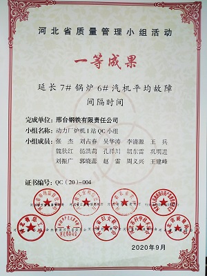 今年5月份邢鋼上報(bào)篩選出的10個(gè)質(zhì)量科技成果,參加了9月份河北省市場(chǎng)監(jiān)管局、省工信廳、省農(nóng)業(yè)農(nóng)村廳、省國(guó)資委、省總工會(huì)、省團(tuán)省委、省婦聯(lián)、省科協(xié)和省質(zhì)協(xié)等9個(gè)單位聯(lián)合組織的成果交流會(huì)發(fā)布比賽,由專(zhuān)家評(píng)委當(dāng)場(chǎng)打分確定比賽成績(jī),最終認(rèn)定了各參賽選手獲獎(jiǎng)等級(jí),日前通過(guò)冀質(zhì)協(xié)字〔2020〕20 號(hào)《關(guān)于印發(fā)2020年河北省質(zhì)量管理小組活動(dòng)質(zhì)量科技成果及優(yōu)秀企業(yè)、卓越領(lǐng)導(dǎo)者、優(yōu)秀推進(jìn)者名單的通知》文件中公布了質(zhì)量成果獲獎(jiǎng)名單,并頒發(fā)了證書(shū)。