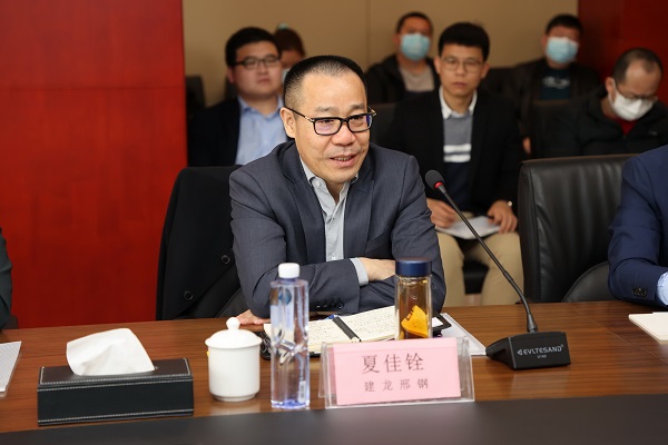 建龍集團副總裁夏佳銓對永年地區(qū)客戶長期以來給予邢鋼的支持表示感謝,向客戶介紹了建龍集團“雙五千萬噸”的發(fā)展目標,做強高端工業(yè)用材的的發(fā)展思路,以及實現(xiàn)“四個轉型”的發(fā)展方向。指出:“建龍集團對邢鋼的未來發(fā)展充滿信心,將從各方面進行全面支持,邢鋼高質量的冷鐓鋼產(chǎn)品今后將充分滿足永年客戶的需求,并實現(xiàn)與客戶的雙贏和共同成長”。對客戶提出的交貨期問題、質量問題,要求邢鋼銷售部門與研發(fā)部門、生產(chǎn)部門加強聯(lián)動,快速反應,提升客戶的滿意度,重塑邢鋼形象。