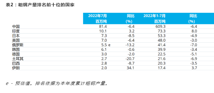 來源:世界鋼鐵協(xié)會 發(fā)布時間:2022年08月24日 點擊數(shù):