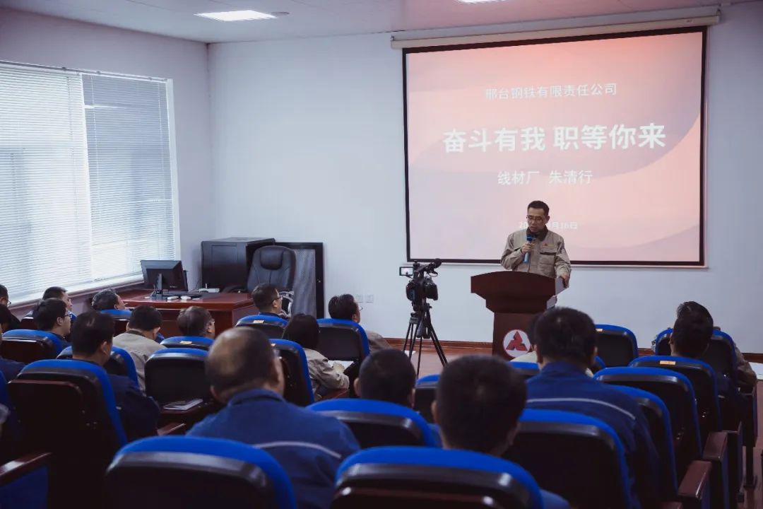為加強(qiáng)員工隊(duì)伍建設(shè),提供人才晉升渠道,實(shí)施動態(tài)儲備,4月16日,邢鋼組織開展了“奮斗有我,職等你來”主題演講會,倡議廣大青年員工立足崗位比奉獻(xiàn),積極為公司發(fā)展諫言獻(xiàn)策,并激勵他們錘煉品德、勇于創(chuàng)新、實(shí)學(xué)實(shí)干,和公司一起成長,成為邢鋼事業(yè)發(fā)展的中堅(jiān)力量。公司董事長兼黨委書記張育明等公司領(lǐng)導(dǎo)及各單位主管領(lǐng)導(dǎo)參與了本次活動。