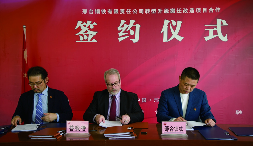 圖為普銳特冶金技術(shù)中國(guó)副總裁佐野洋一、普銳特冶金技術(shù)美國(guó)執(zhí)行COO Robert Lesage 與邢鋼董事長(zhǎng)張育明簽訂軋機(jī)設(shè)備合同。 (普銳特冶金技術(shù))