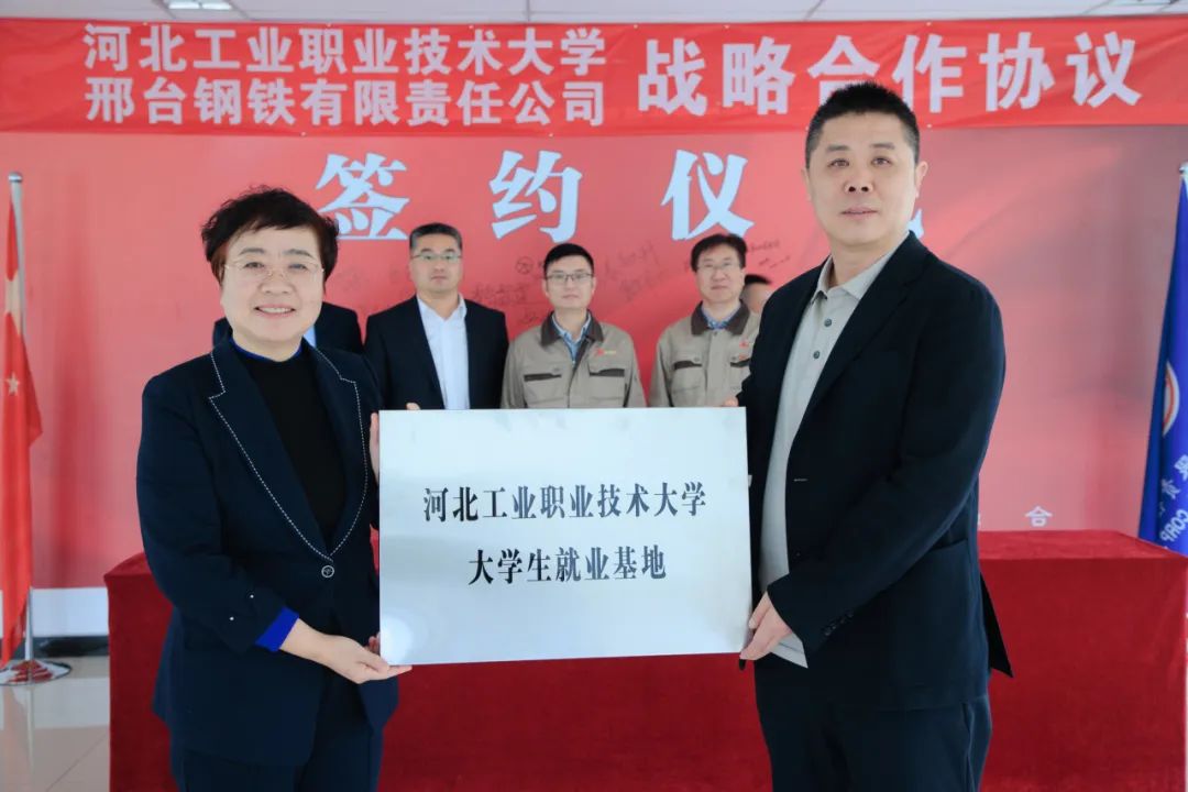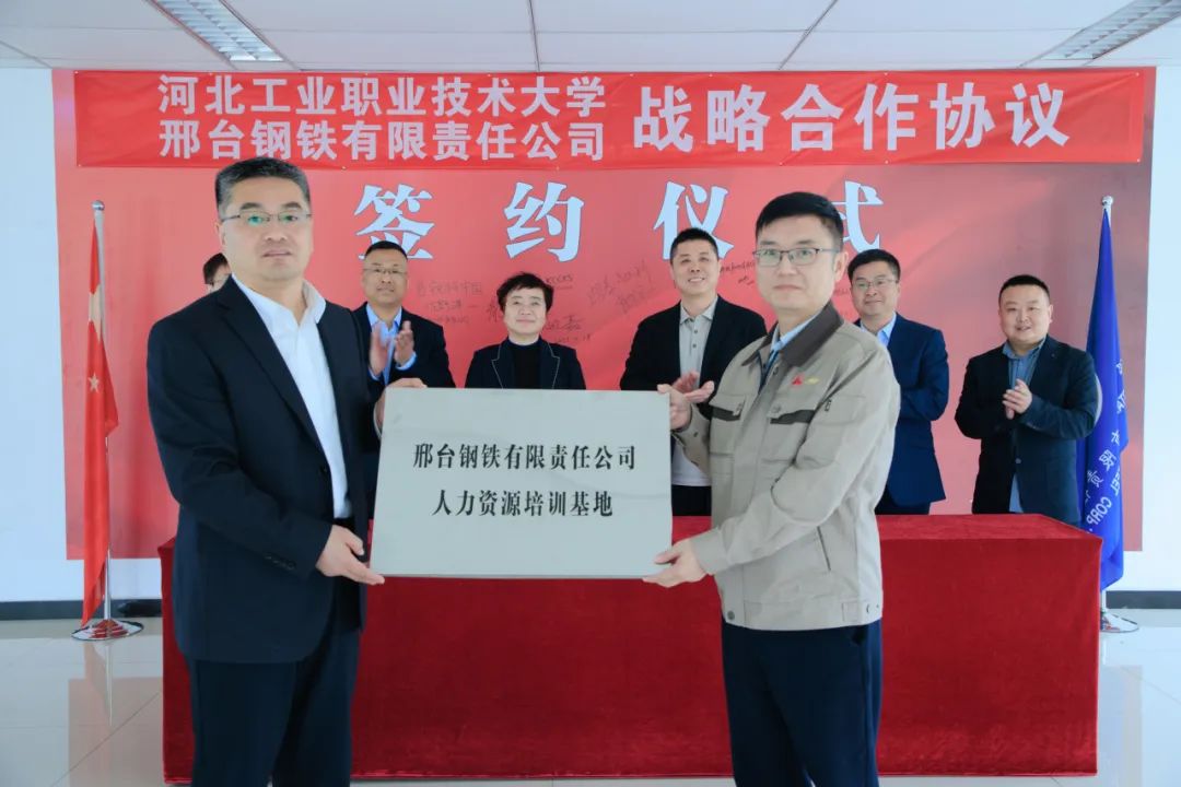 在與會人員的共同見證下,雙方代表簽訂了校企合作協(xié)議。還分別進(jìn)行了“河北工業(yè)職業(yè)技術(shù)大學(xué)大學(xué)生就業(yè)基地”、“河北工業(yè)職業(yè)技術(shù)大學(xué)實(shí)踐教學(xué)基地”、“邢臺鋼鐵有限責(zé)任公司人力資源培訓(xùn)基地”授牌互認(rèn)。