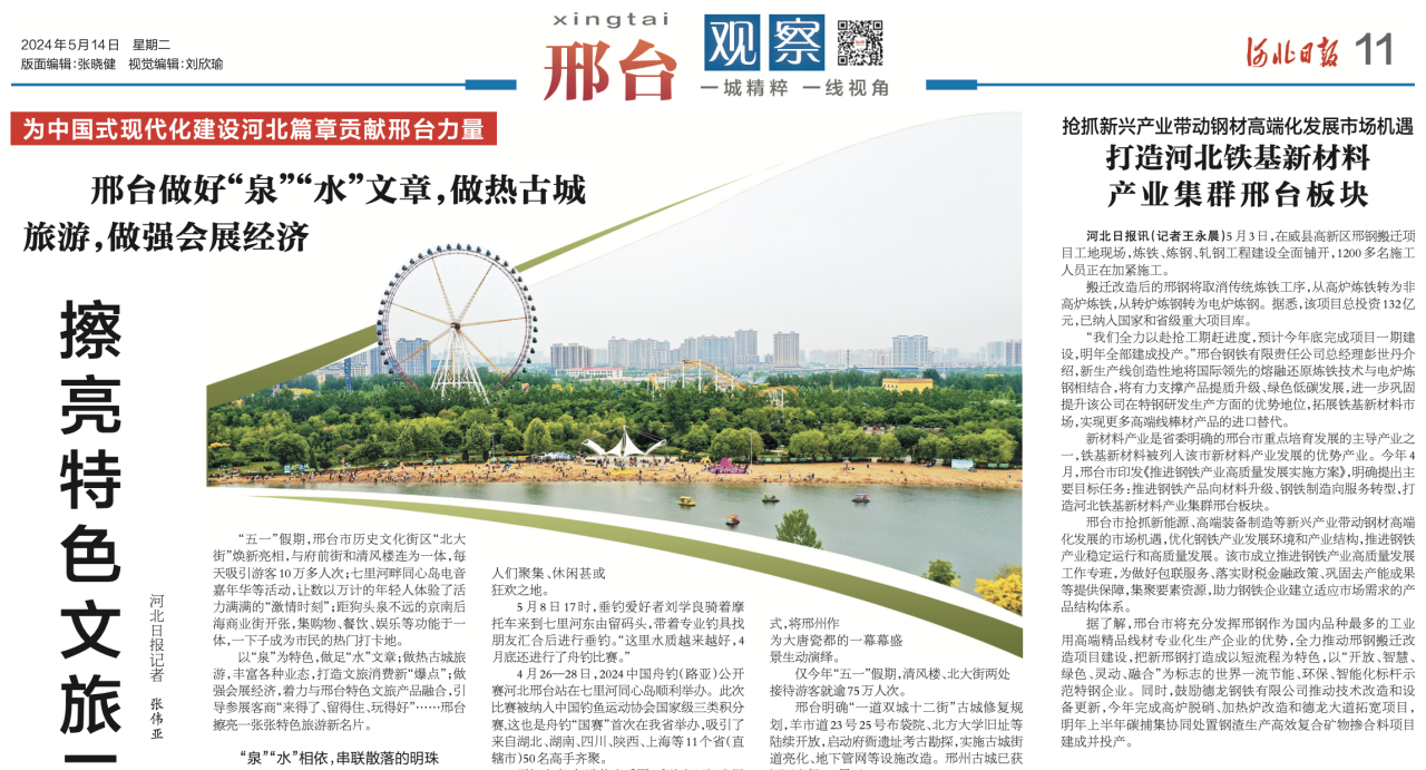 “我們?nèi)σ愿皳尮て谮s進(jìn)度,預(yù)計今年底完成項目一期建 設(shè),明年全部建成投產(chǎn)。”邢臺鋼鐵有限責(zé)任公司總經(jīng)理彭世丹介 紹,新生產(chǎn)線創(chuàng)造性地將國際領(lǐng)先的熔融還原煉鐵技術(shù)與電爐煉 鋼相結(jié)合,將有力支撐產(chǎn)品提質(zhì)升級、綠色低碳發(fā)展,進(jìn)一步鞏固 提升該公司在特鋼研發(fā)生產(chǎn)方面的優(yōu)勢地位,拓展鐵基新材料市 場,實現(xiàn)更多高端線棒材產(chǎn)品的進(jìn)口替代。