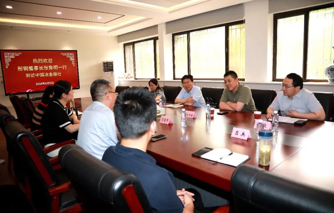 6月5日下午,邢臺(tái)鋼鐵有限責(zé)任公司董事長(zhǎng)張育明一行到訪中國(guó)冶金報(bào)社,中國(guó)鋼鐵工業(yè)協(xié)會(huì)副秘書(shū)長(zhǎng),中國(guó)冶金報(bào)社黨委書(shū)記、社長(zhǎng)范鐵軍熱情歡迎張育明一行的到來(lái),雙方進(jìn)行了座談交流。