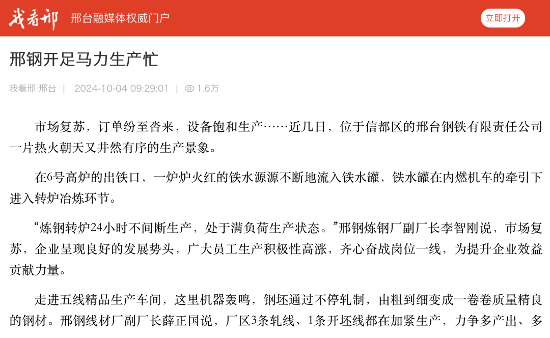 在 6 號(hào)高爐的出鐵口,一爐爐火紅的鐵水源源不斷地流入鐵水罐,鐵水罐在內(nèi)燃機(jī)車的牽引下進(jìn)入轉(zhuǎn)爐冶煉環(huán)節(jié)。“煉鋼轉(zhuǎn)爐 24 小時(shí)不間斷生產(chǎn), 處于滿負(fù)荷生產(chǎn)狀態(tài)。”邢鋼煉鋼廠副 廠長李智剛說,市場(chǎng)復(fù)蘇,企業(yè)呈現(xiàn)良好的發(fā)展勢(shì)頭,廣大員工生產(chǎn)積極性高漲,齊心奮戰(zhàn)崗位一線,為提升企業(yè)效益貢獻(xiàn)力量。走進(jìn)五線精品生產(chǎn)車間,這里機(jī)器轟鳴,鋼坯通過不停軋制,由粗到細(xì)變成一卷卷質(zhì)量精良的鋼材。邢鋼線材廠副廠長薛正國說,廠區(qū) 3 條軋線、 1 條開坯線都在加緊生產(chǎn),力爭多產(chǎn) 出、多收益。近年來,邢鋼致力于轉(zhuǎn)型升級(jí)促進(jìn)高質(zhì)量發(fā)展,專注于工業(yè)新材料的研發(fā)制造,公司優(yōu)特鋼比例達(dá) 100%,高新產(chǎn)品達(dá) 70%以上,擁有冷鐓鋼、純鐵、彈簧鋼等 18 大類 600 多個(gè)鋼種 3500 多種產(chǎn)品,廣泛應(yīng)用于汽車、大跨 度橋梁、鐵路等國家優(yōu)先發(fā)展的領(lǐng)域。高品質(zhì)特鋼產(chǎn)品讓邢鋼不斷贏得市場(chǎng)認(rèn)可。前不久,在上海國際緊固件 工業(yè)博覽會(huì)和 2024 印尼雅加達(dá)東南亞緊固件專業(yè)展上,邢鋼與巴西、越南等多個(gè)國家的企業(yè)達(dá)成合作意向;邢鋼的“新能源汽車用高強(qiáng)度超高潔凈度冷鐓鋼技術(shù)創(chuàng)新及應(yīng)用”項(xiàng)目經(jīng)河北省質(zhì)量 文化協(xié)會(huì)選拔、中國質(zhì)量協(xié)會(huì)推薦,成功入圍 2024 年度國際質(zhì)量創(chuàng)新大賽。“邢鋼專注高端鋼材生產(chǎn),市場(chǎng)競(jìng)爭力強(qiáng),訂單充足,未來一個(gè)月的訂單已經(jīng)基本排滿,多種規(guī)格產(chǎn)品訂單量增長。”在五線中控室,薛正國在電腦上翻看排單表,信心十足地說“,在市場(chǎng)大環(huán)境穩(wěn)定的情況下,訂單量有保證。”在采訪中,五線精品生產(chǎn)車間主任張志斌說,火力全開的生產(chǎn)景象令人振奮,他將把自己 20 年的工作經(jīng)驗(yàn)運(yùn)用到生產(chǎn)中去,推動(dòng)鋼材標(biāo)準(zhǔn)化生 產(chǎn),滿足客戶的需求,不斷提升產(chǎn)品質(zhì)量和邢鋼品牌滿意度。