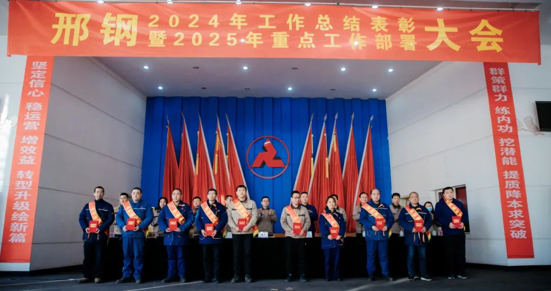 2025年1月15日下午,邢鋼隆重召開2024后工作總結(jié)表彰暨2025年重點(diǎn)工作部署大會(huì),全面回顧2024年生產(chǎn)經(jīng)營各項(xiàng)工作,安排部署2025年重點(diǎn)工作,對(duì)2024年度先進(jìn)集體、先進(jìn)個(gè)人予以表彰。